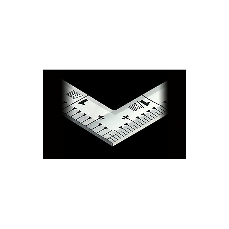 Features: It is thicker than a regular curve measure, making it more durable. Small size, easy to use, and convenient to carry. It is also useful as a ruler for finding right angles, and is suitable for joining jobs. Specifications: Square shape with same thick; Front scale Long branch: outside scale; 1 shrd; Short branches: outside scale 5 sizes; Back scale Long branches: outside scale; Square scale: 5 sizes; Body size 320 (160 x 15 x 2.6 mm); Product weight 4.6 oz (116 g); Straight angle 100 mm Length is less than 0.8 inches (5 Difference ± 0.008 in (0.2 mm); Material: Stainless steel.