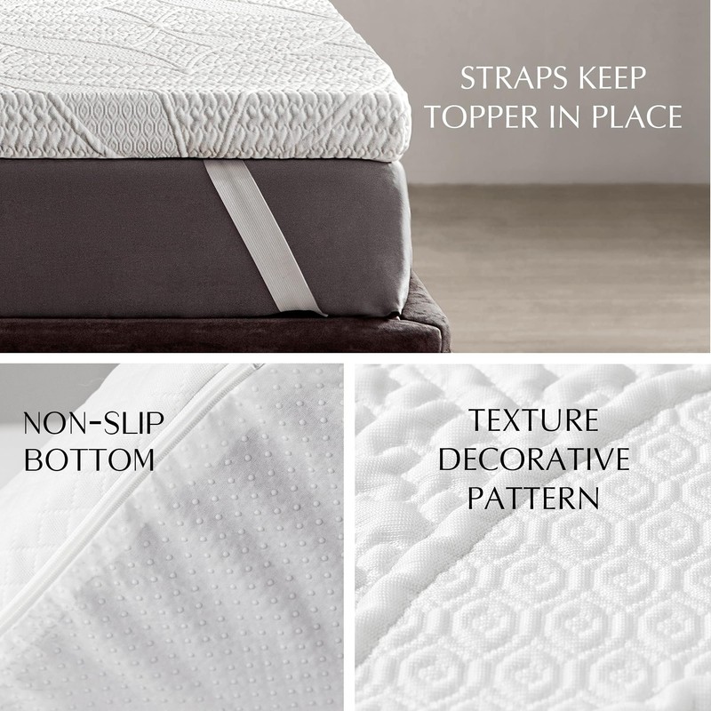 - GEL MEMORY FOAM MATERIAL: Our memory foam mattress topper readily conforms to the curves and shape of your body, distributes weight evenly to alleviate pressure points for better sleep.
