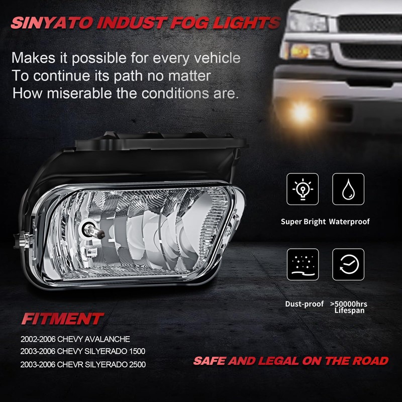 SINYATO INDUST Fog Lights for Chevy Silverado 2003 2004 2005 2006 2007,Bumper Driving Fog Lamps Replacement,Halogen Bulbs,one pair
