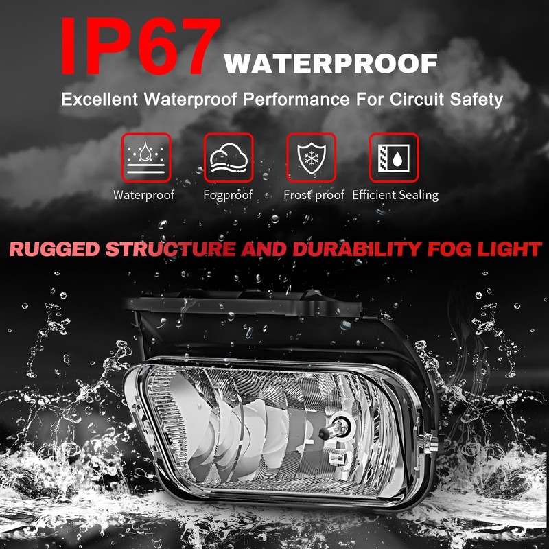 - High Quality Fog Lights: Precision optics ensure a controlled light concentration for enhanced visibility. The PC lens offers superior UV protection and impact resistance, while the rugged housing effectively prevents moisture and dust ingress