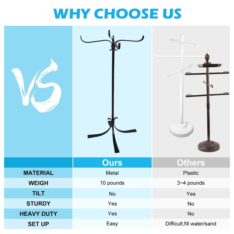 - 【Heavy Duty Material & Sturdy】Made of high-quality iron, weighs up to 10 pounds, heavy duty and sturdy. Not tilt like those plastic one, even if a 50 pounds object/towel placed on it. Can withstand strong winds, heavy rain etc.