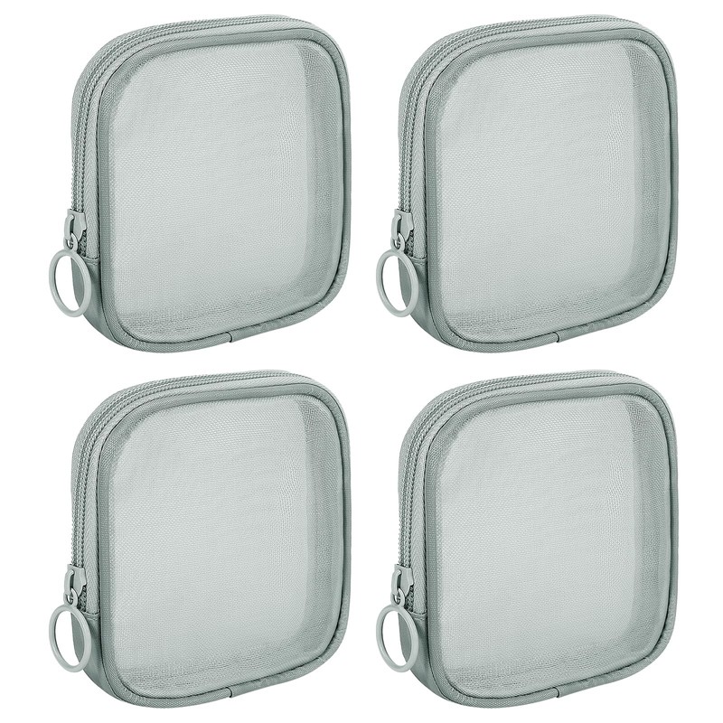 Sinzip 4 Pieces Mini Zipper Nylon Mesh Pouch, Mesh Cosmetic Bags Makeup Bags, Multipurpose Travel Toiletry Bags for Office Supplies and Travel Accessories (Grey, S)
