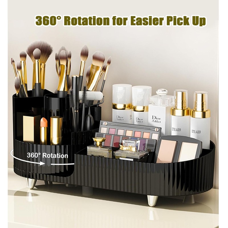 • 【2-in-1 Organizer】The cosmetic organiser is designed with two areas for fixed and rotating storage, with a large capacity to easily hold all cosmetics. Hold at least 30 makeup brushes, 20 skin care products and other accessories such as lipsticks, nail polish, eyeliner and more cosmetics.