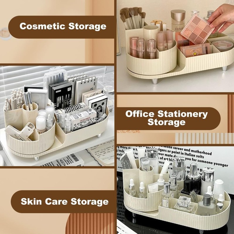 • VERSATILE COMPARTMENTS The makeup brush holder and skincare organizer have compartments of different heights, shapes and sizes to fit all your cosmetics. This ensures that all your important beauty items have their place, reducing clutter and saving desk space.