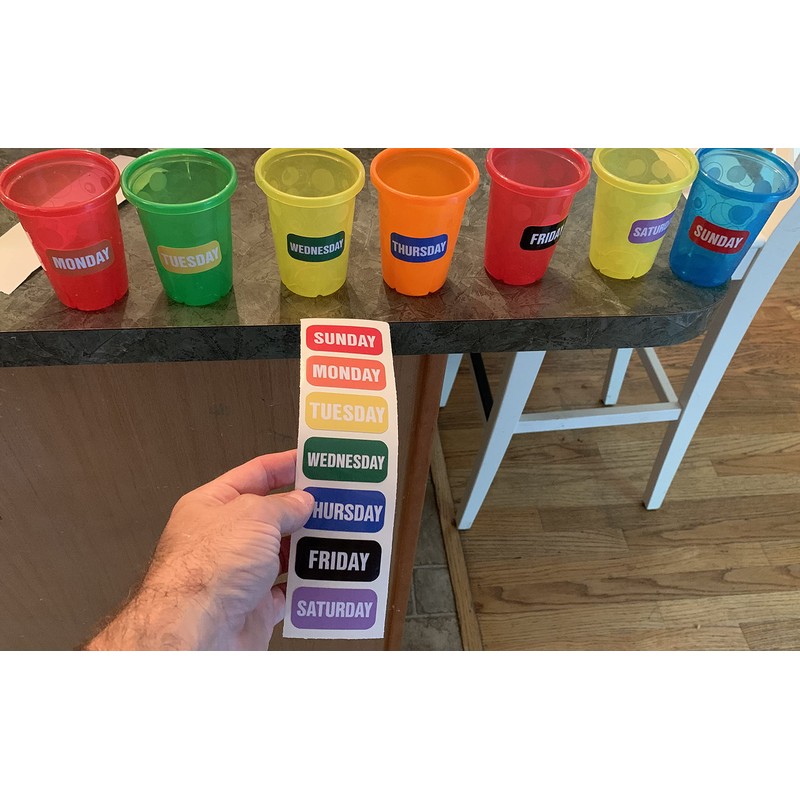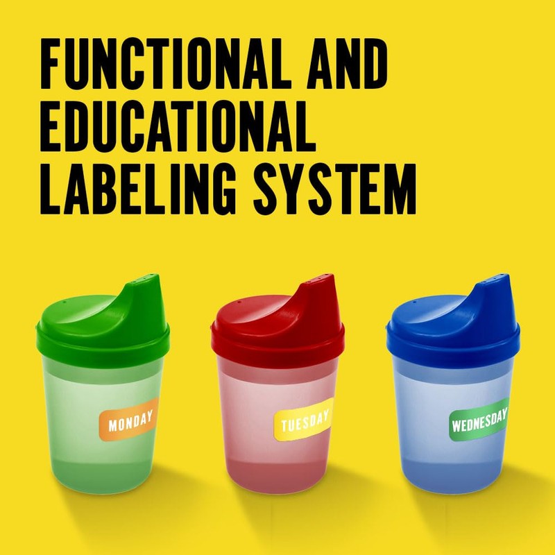 Sip'n Learn Labels - Learn Days of The Week and Colors of The Rainbow - Weekly Labels for Toddlers - Dual Learning & Education Tool - Sticker Set for Sippy Cups, Dishwasher Safe.
