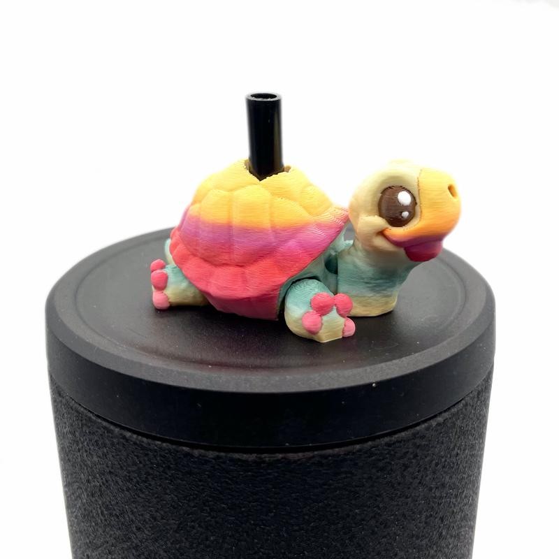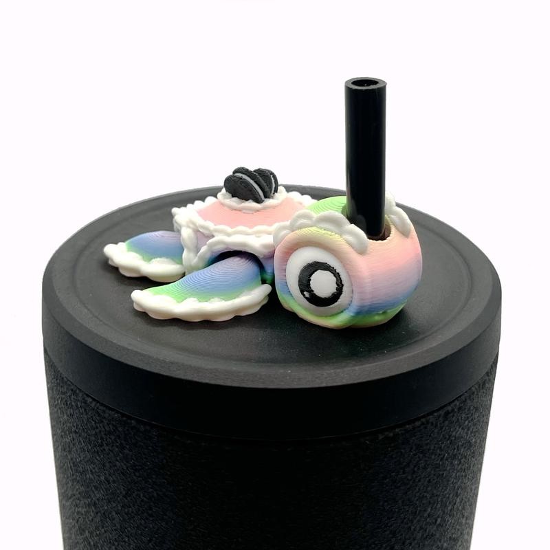 Sip Sidekicks - Articulating 3D Printed Animal Figurines – Pocket-Sized Drinkware Collectibles – Adorable 3D Printed Straw Buddy for Tumbler Cups | Collectible Cup Charm:_Oreo Birthday Cake Turtle