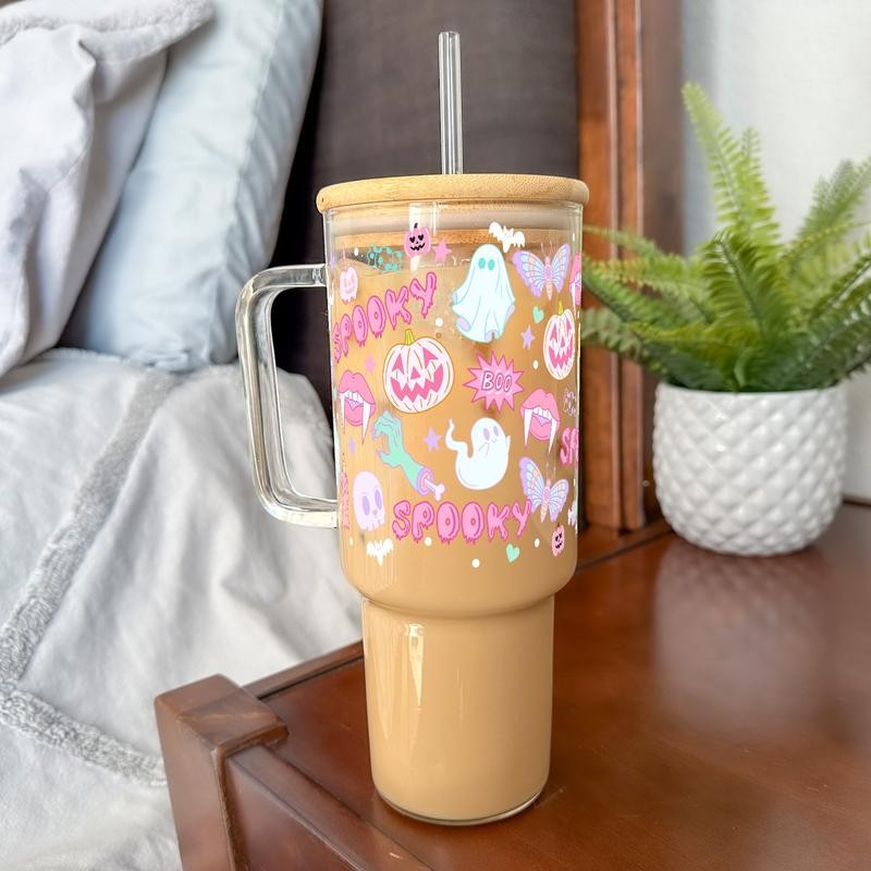 Sip-Sip Hooray! Halloween Tumbler – Cup with Lid & Straw, Spooky Season Iced Coffee Gift, Halloweentok 2024 Reusable Drinkware:_Spooky Sugar Cookies_40oz Plastic Tumbler with Plastic Lid