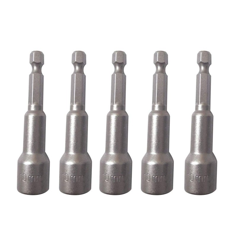 **Specification** 5Pcs 10mm Magnetic Hex Nut Driver Main Material:Chrome Vanadium Steel Features: Magnetic Main Color: Grey Socket Type: Hex Socket Shank Size: 6.35mm / 1/4" Hex Socket Size: 10mm/0.4" Overall Size: 65 x 13mm/4" x 0.5"(L*D) 1\. Strong magnetism for convenient operation. 2\. Anti rust & anti slip & flexible. 3\. Fitting most powered corded or cordless drills with 1/4" shank. **Kindly Note:** Please allow 1-2mm errors due to manual measurement, thank you for your understanding!