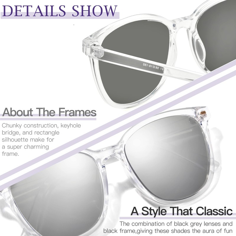 - UV400 & Style Essentials Shade: UV400 protection shields eyes from UVA/UVB rays, while polarized lenses reduce water/road glare by 80% . Drive safer, hike longer, and post envy-worthy OOTDs without eye strain. It is also a scientific investment in the health of your eyes.