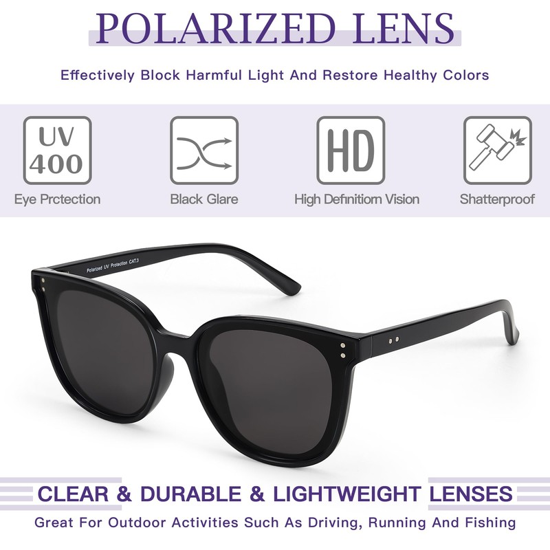 - UV400 & Style Essentials Shade: UV400 protection shields eyes from UVA/UVB rays, while polarized lenses reduce water/road glare by 80% . Drive safer, hike longer, and post envy-worthy OOTDs without eye strain. It is also a scientific investment in the health of your eyes.