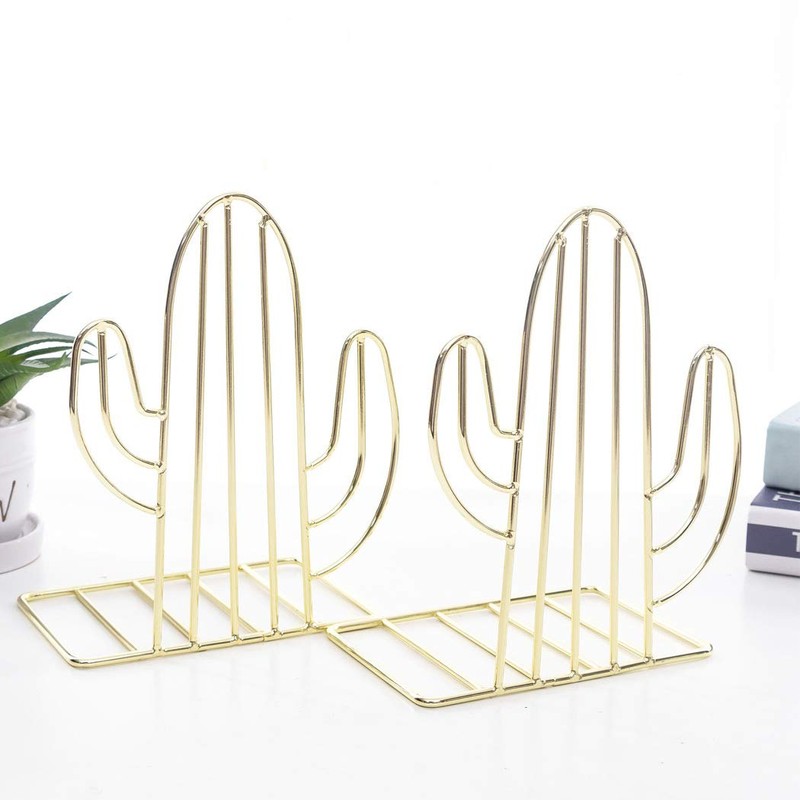 SIPLIV Creative Minimalist Style Bookends Metal Adjustable Books Holder Stand Book Rack Desk Bookend - Cactus, Gold