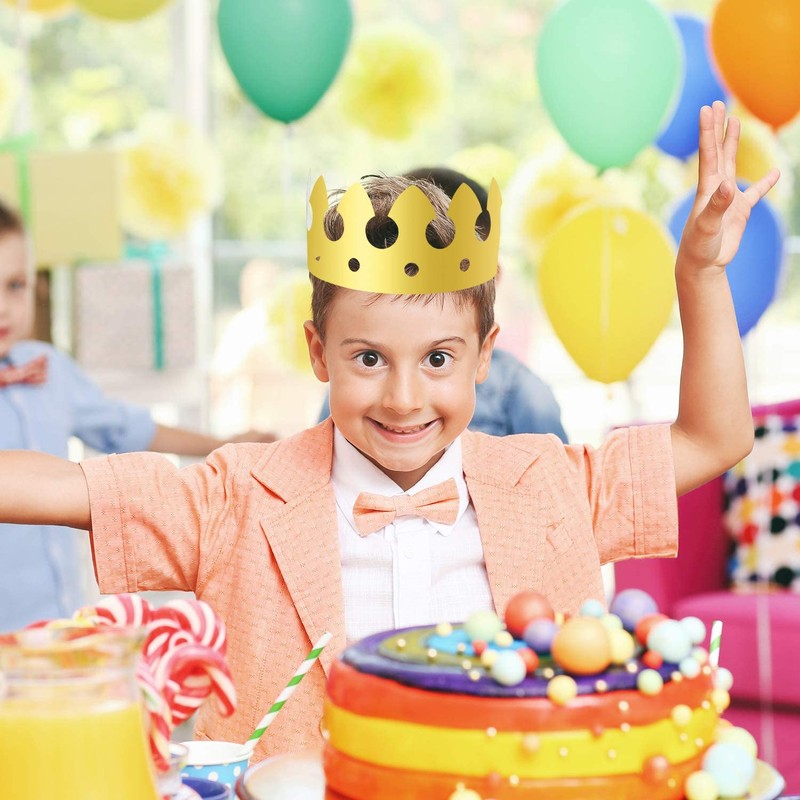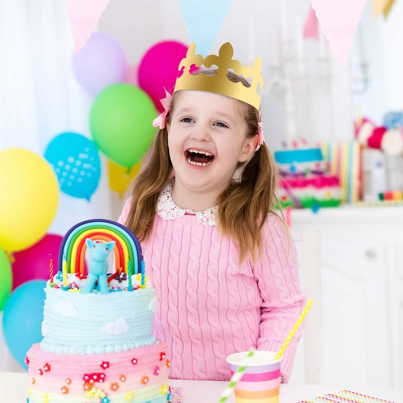 - Sparkling crown hats - the paper crown made of premium golden foil paper, durable and eye-catching, you will feel like a royalty by wearing the crown hats, and attract guests’ attention in the party
