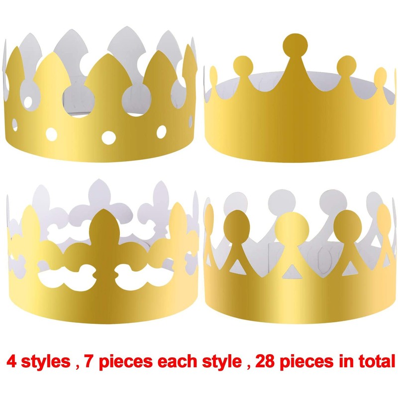 - 4 styles and large quantity - come with 28 pieces paper crown hats, convenient for share and replace; designed with 4 styles, 7 pieces for each style, you can share different crown hats with your friends in the party