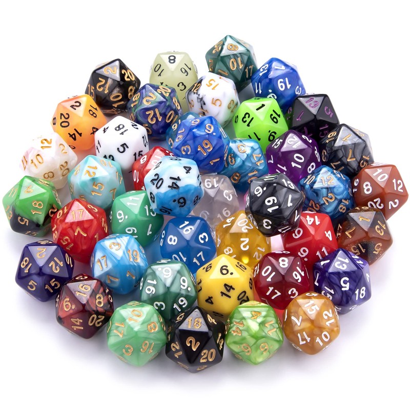 • Package includes - come with 42 pieces 20-sided dice in random colours, including solid colours, transparent colours, pearl patterns and glitter patterns, no repeated colours; also comes with a black velvet pouch for storage, convenient and portable