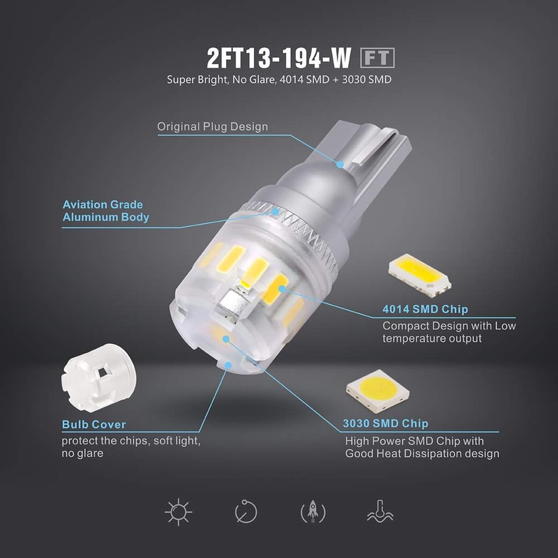 - Fit: 194 912 921 2825 bulb, The LED bulb is slightly bigger compare with original bulb, please double check light fixture space before purchase