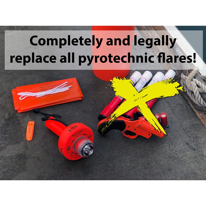 - Orange distress flag fulfills daytime signal requirement; Quality marine whistle complies with USCG audible signal requirements