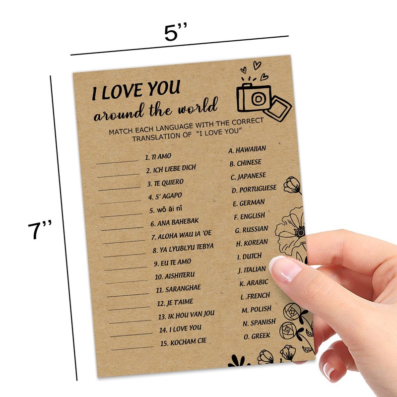 - ❤What Will You Receive❤This bridal shower game set are includes 30 "I Love You Around the World" card( 5*7inches) and 1answer key. These card are made of Kraft cardboard. Each batch is carefully packaged by hand and inspected carefully.