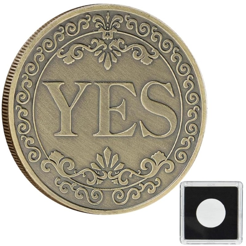 SIRLOMU 1 Piece Yes No Challenge Coin Stereo Embossed Pattern Commemorative Coin, Collector's Coin, Game Coin with Storage Box (Bronze)