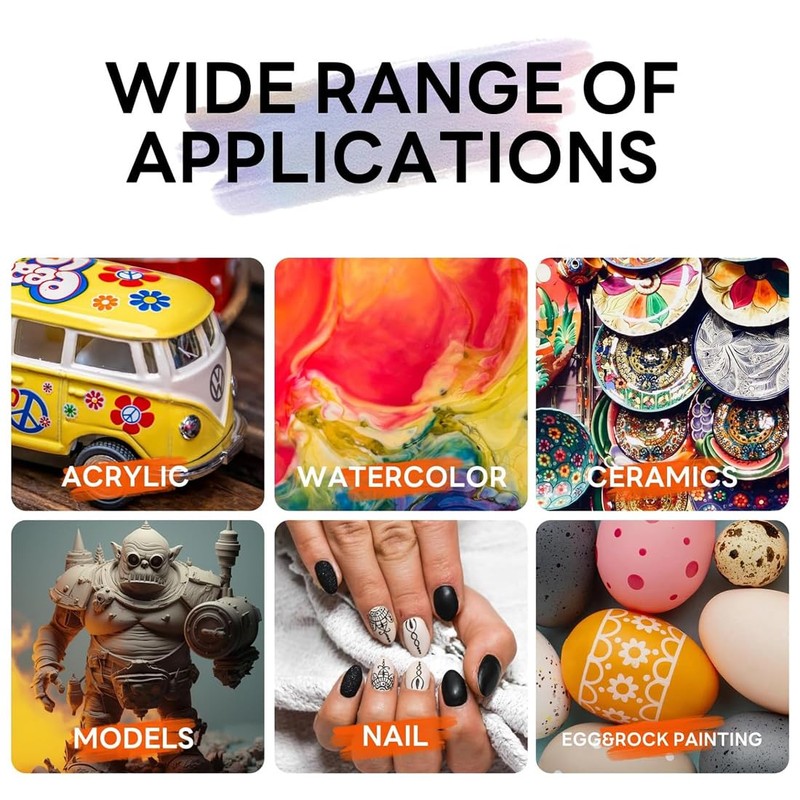 MULTIPURPOSE The brushes are suitable for tracing and reproducing fine details. Fine brushes suitable for acrylic, watercolour, oil, gouache, nail art, makeup, miniatures, crafts, action figures and more. The small brushes are ideal painting tools for beginners and professionals.