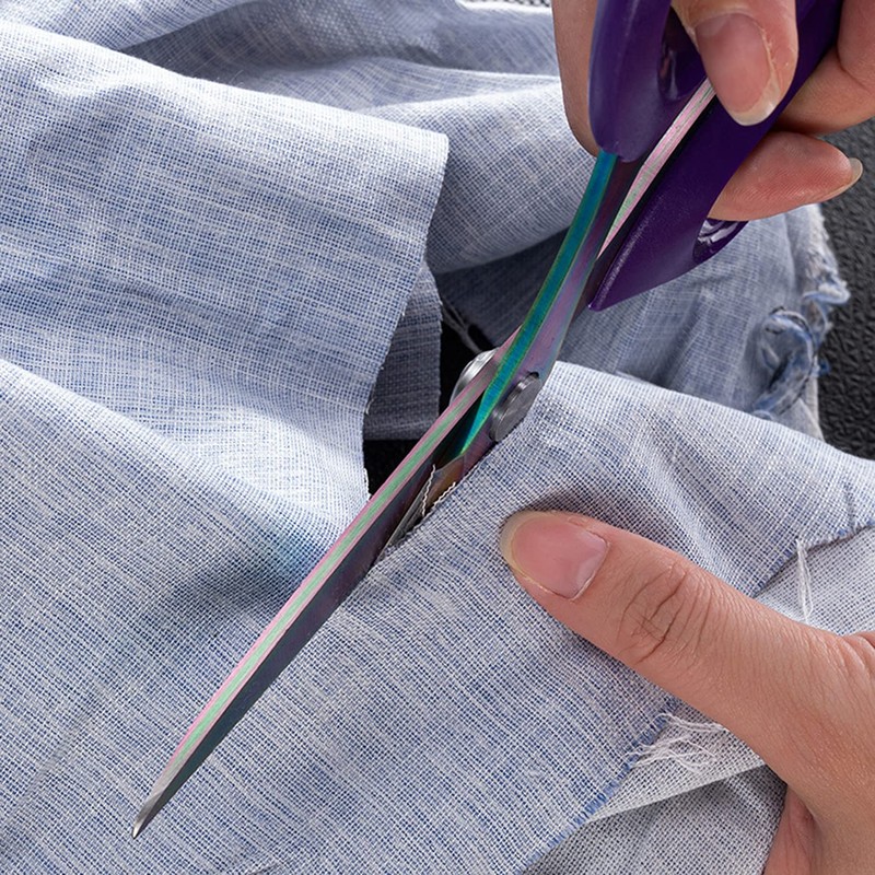 - PREMIUM QUALITY - These beautiful multiple purpose scissors are made of premium titanium coated stainless steel ensuring the smoothest cutting experience.Not only are these scissors practical, they also look incredible.They have a modern look with a purple handle that adds a sophistication for your daily use.