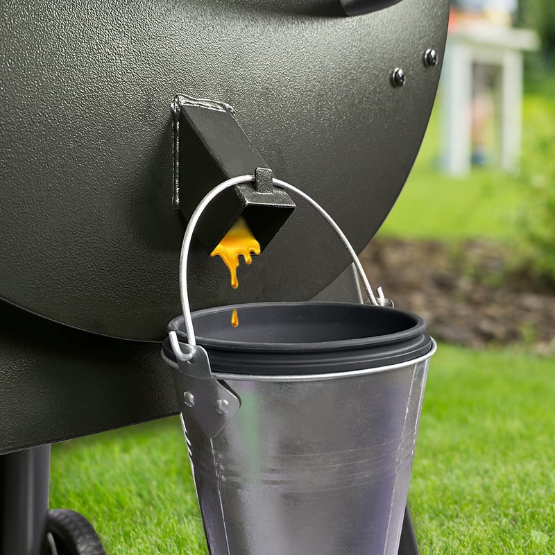 - EASY TO CLEAN AND STORE: The silicone bucket lid and liner as well as the grease chute cover are very easy to clean and store, the silicone bucket lid and liner are made of food grade silicone with a folding design, the grease trough lid is made of aluminum alloy with magnets, so that it can be attached to the traeger grill at will.