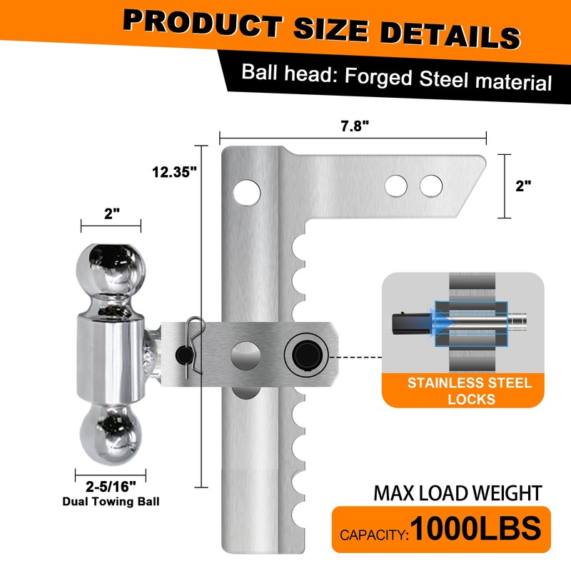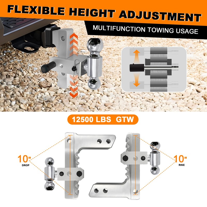 - 2. The 2 inch receiver hitch tow hitch designed for durability, this aluminum Hitch Ball Mount is lightweight yet robust, ideal for heavy-duty towing. The drop hitch adjustable feature allows you to customize the drop height for different trailer needs,our ball hitch enhancing your hitched ride experience.