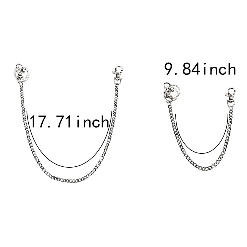 - Wallet Key Chain for Men Women: You can receive two chains of different lengths to decorate the pants, simple and stylish metal chain pants can be worn in a variety of ways, make you cool and eye-catching, help you get more compliments from others, metal pants chain can be hung over jeans, punk pants, short shorts, etc, to decorate your style and is ideal for showing off your personality, metal chain pants for women men