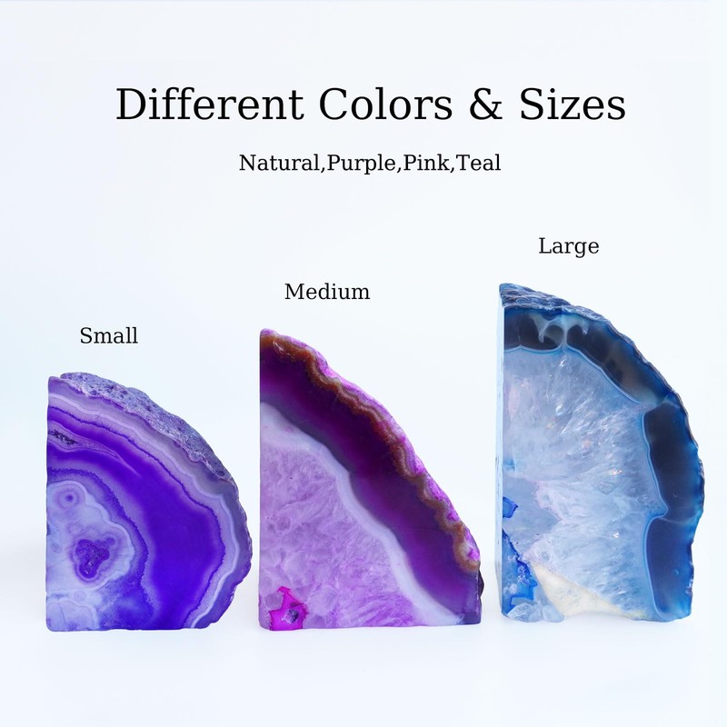 - 💎 Unique Pink Dyed Agate Bookends: Each bookend is cut and polished from natural agate geodes, then dyed a vibrant Pink. Every piece is unique, with distinct patterns and shapes, while the back retains the natural roughness of the agate shell, adding to its mysterious charm.