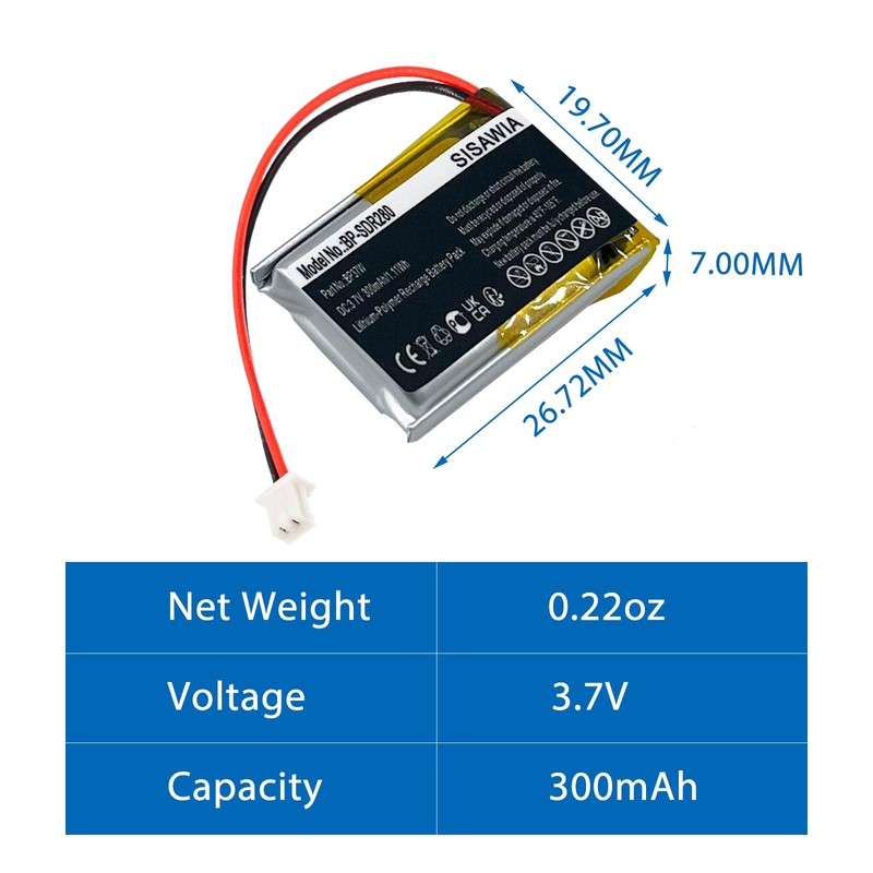 - 【Product Information】Parameter:3.7V/300mAh/1.11Wh.