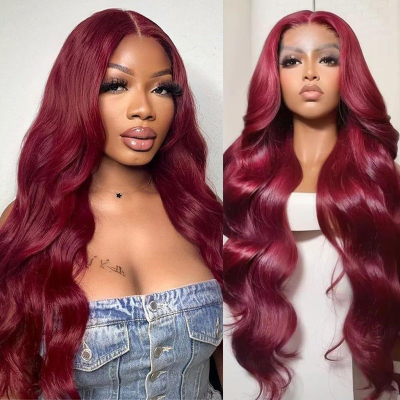 - 99J Burgundy HD Lace Front Wigs Human Hair Quality: 99j burgundy lace front wigs human hair pre plucked hairline, shedding free, tangles free, no smell, soft, can Be dyed&bleached, straightened and restyled, can be side part, middle part, high ponytail& bun, durable, reusable, styled as your own hair.