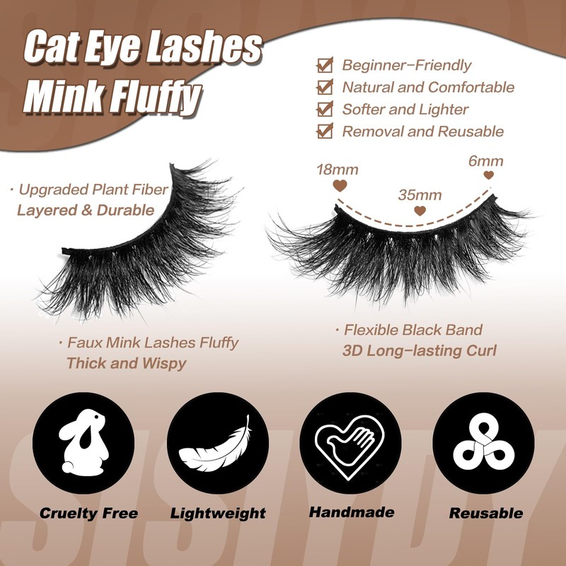 - Reusable & Easy to Apply: Fluffy lashes strip featuring flexible soft band and lightweight faux mink lashes, these fluffy cat eye lashes are easy to apply and remove. Removal and Reusable, they provide a great shopping experience and long-lasting wear