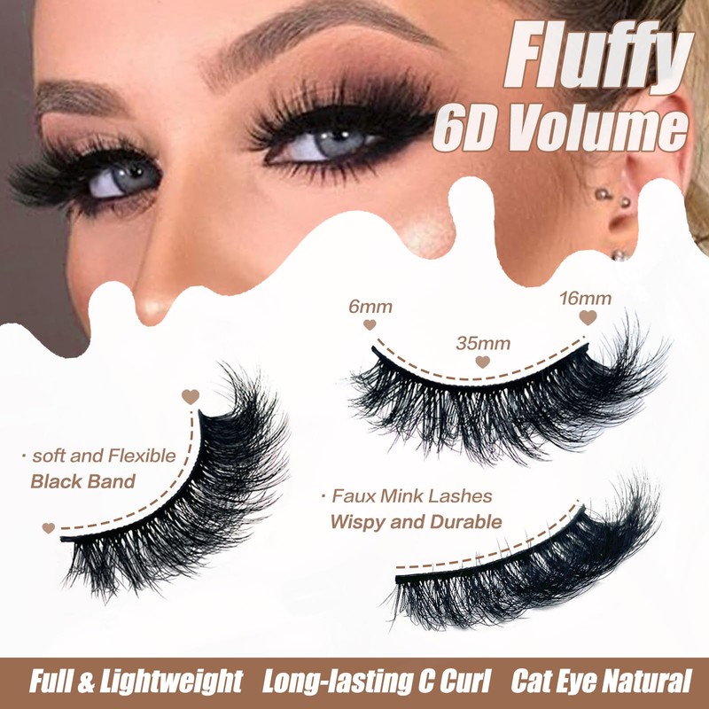 - Fluffy D Curl & Dramatic 3D Effect: With 6D multidimensional fluffy cateye lashes design, short false mink lashes wispy create a D Curl thick and captivating natural look. Wispy soft strip fox eye lashes add a sexy, voluminous effect, while the durable and soft lash material ensures all-day comfort