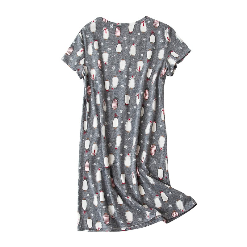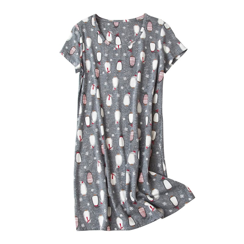 SISKIN Nightgowns for Women Cotton Sleep Shirts Womens Nightgown Short Sleeves Print Night Shirts Soft Sleepwear Gray Penguin X-Large