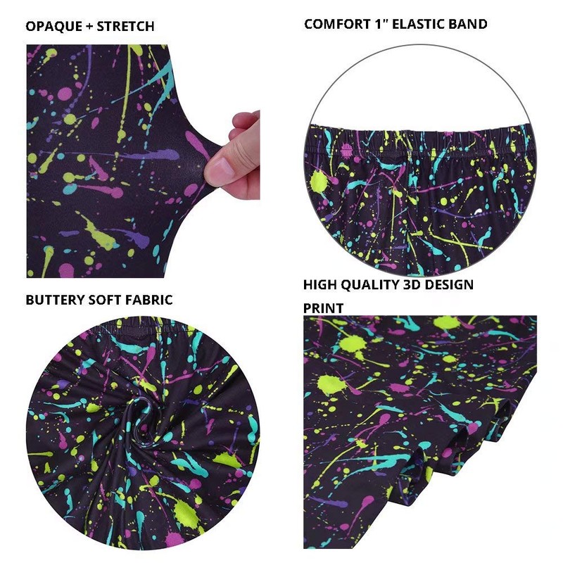- HIGH QUALITY 3D DIGITAL PRINT: 80s color splash leggings, colorful splattered web design neon pattern, messy art ink blob, paintbrush drawing, bright graffiti; No fading