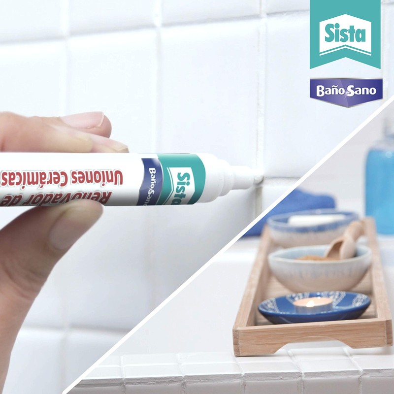 - Contenido – Sista Baño Sano Renovador de Uniones Cerámicas, restaurador impermeable en plumón para juntas, renovador antihongos de triple protección, revestimiento para baños y cocina, blanco, 1x7 ml