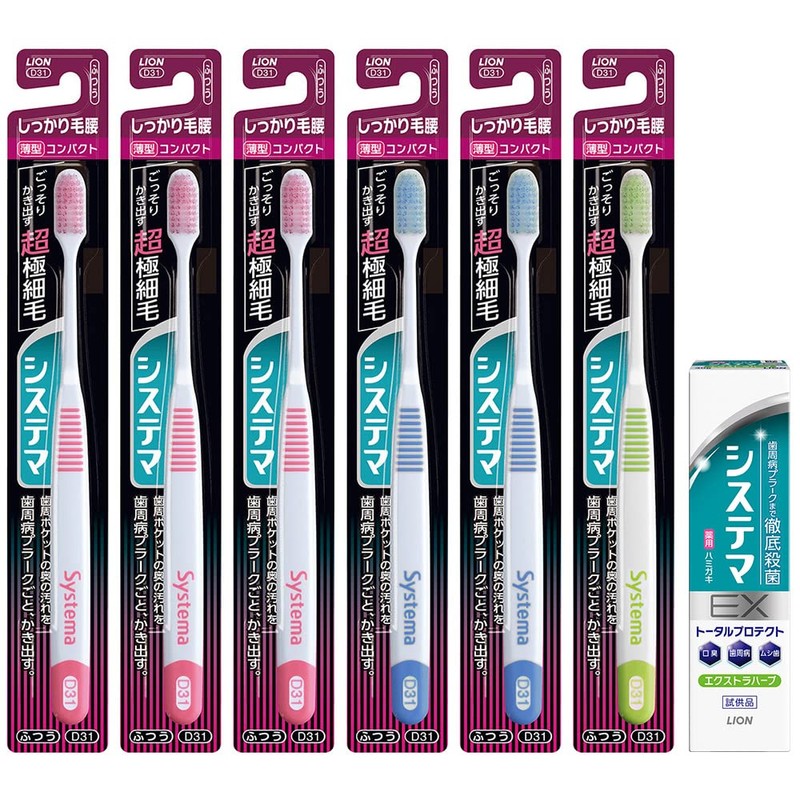 - [Amazon.co.jp Limited] System Maha Brush Firm Hair Waist Type Compact Regular + ex Toothbrush Set of 6