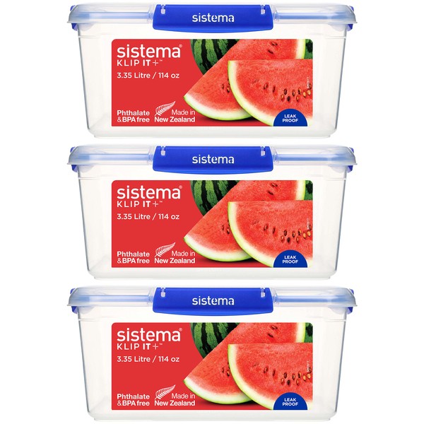Sistema KLIP IT PLUS Food Storage Containers | 3.35 L | Airtight Containers Set | Leak-Proof Seal | Easy Locking Clips | BPA-Free | 3 Count