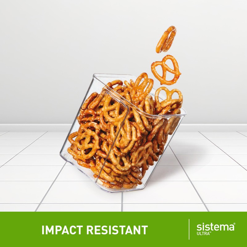 Sistema Ultra 1.73L Rectangle Food Storage Container | Stackable | Airtight Pantry Storage Container with Locking Clips | BPA & Phalate Free | Clear with Black Accents