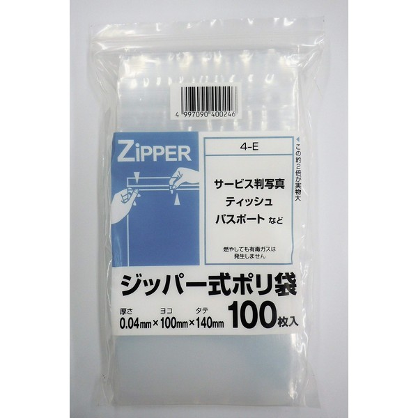 sisutemuporima- Zippered Poly Bag E Clear 0.04 X 100 X 14 mm 100 Pieces