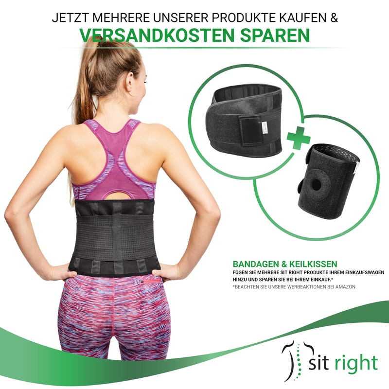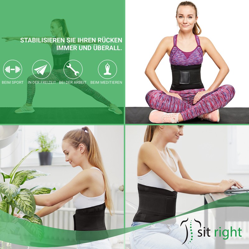 - ✔ Effective stability of the back – the Sit Right bandage supports and relieves your back muscles. As a result, it helps you stay active, prevent injury, relieve back pain and protect your lower back. Use the Sit Right belt for strength sports as a classic weight lifting belt, during endurance sports as a sweat belt, in everyday life as a stabilising belt when lifting and wearing or when going out as a waist belt or waist shaper.