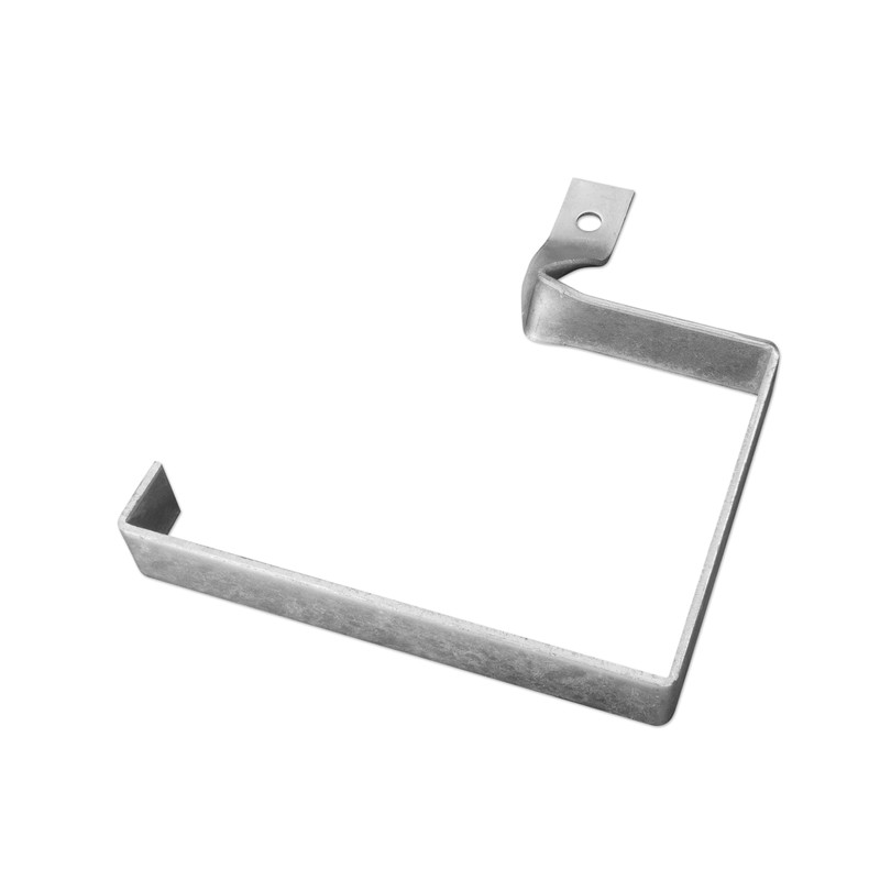 The construction fence lifting protection is a flat steel bracket, which is placed around the base. At the upper end of the safety element, the fields of the mobile fence are attached to the lifting protection with a connection clamp (see accessories).