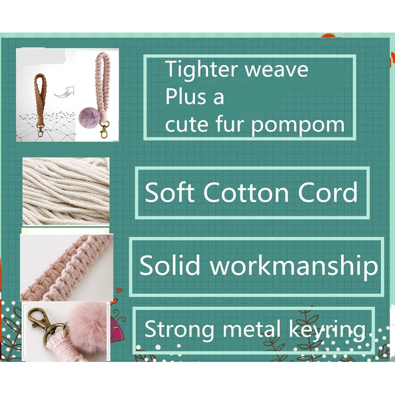 - ✔【Handmade & Practical 】Macrame keychains of different colors,Hand weaving. It can not only be used as a Keychain, but also as a Bracelet、Jewelry、Accessories,the keychain can tie on school bag or handbag. The bright color keychain make your keys visible in cluttered places. You Won't lose your keys, and you can find them immediately!