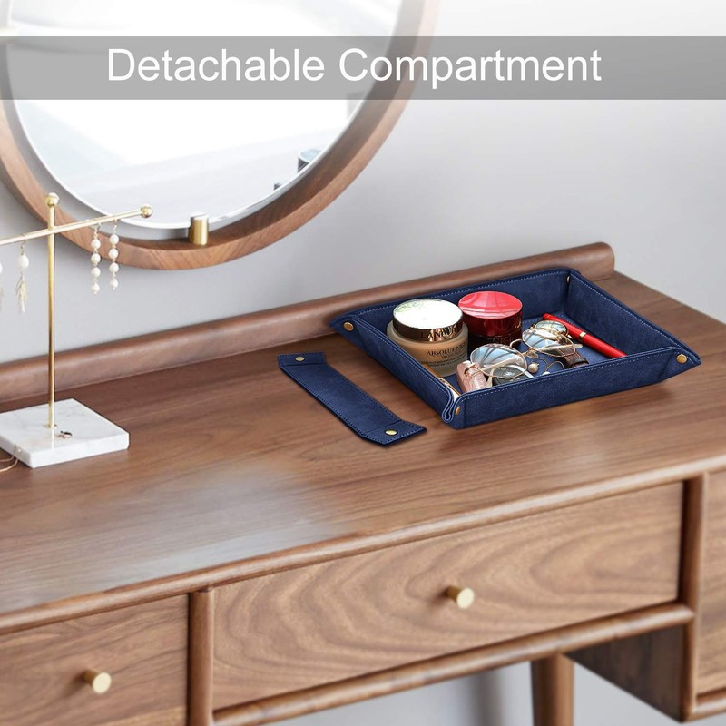 SITHON Valet Tray Desktop Storage Organizer – Removable 2 Compartments Catchall Tray Bedside Vanity Tray Nightstand Caddy Holder Desk Storage Plate, Dark Blue