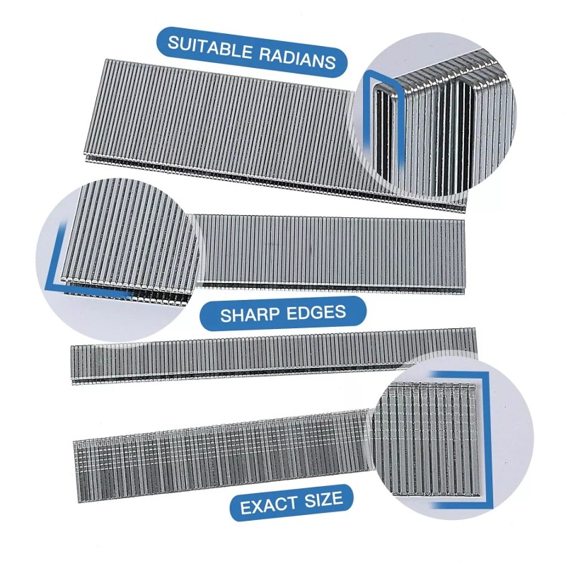 - Total quantity: There are 1600 pieces narrow crown staples and brad nails with 4 different sizes in the package(1/4"crown staples:1/2"-400,3/4"-400,1"-400,brad nail:5/8"-400). Fasteners per stick: 100.