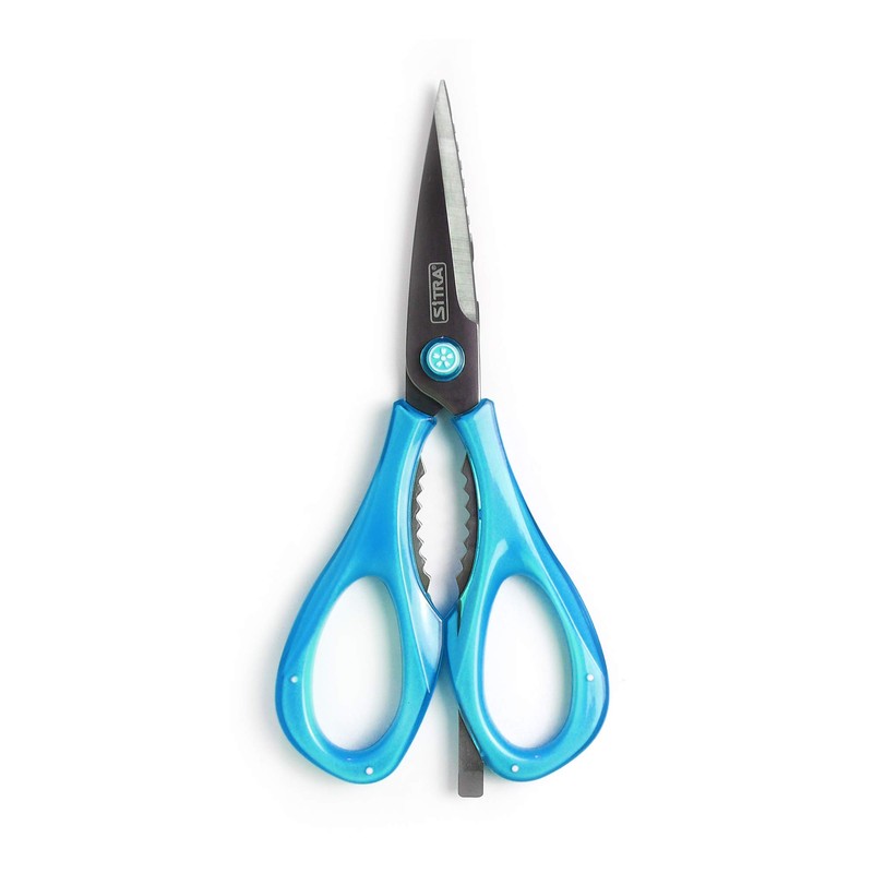 SiTRA 5-in-1 Clear Handle Multifunctional Kitchen Scissors (Blue)