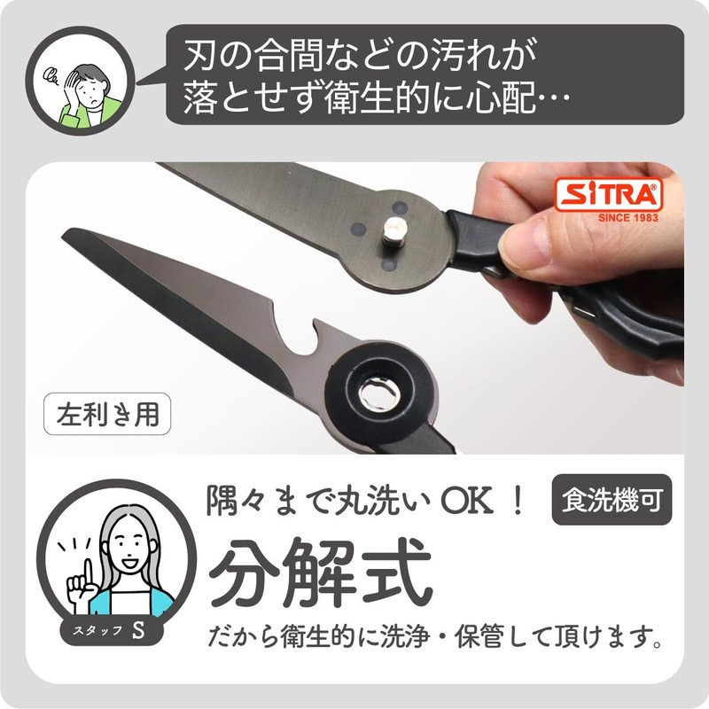 SiTRA Left-Handed Disassembly Multi-functional Kitchen Scissors Sleek Compact