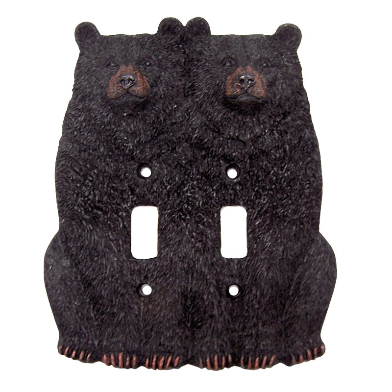 DOUBLE TOGGLE LIGHT SWITCH COVER Featuring Two Sitting Black Bears MATERIAL: Resin SIZE: 6"L x 0.75"W x 7.25"H INCLUDES 4 Screws to Make for Easy Installation PERFECT ACCENT to Compliment Rustic Cabin or Lodge Décor