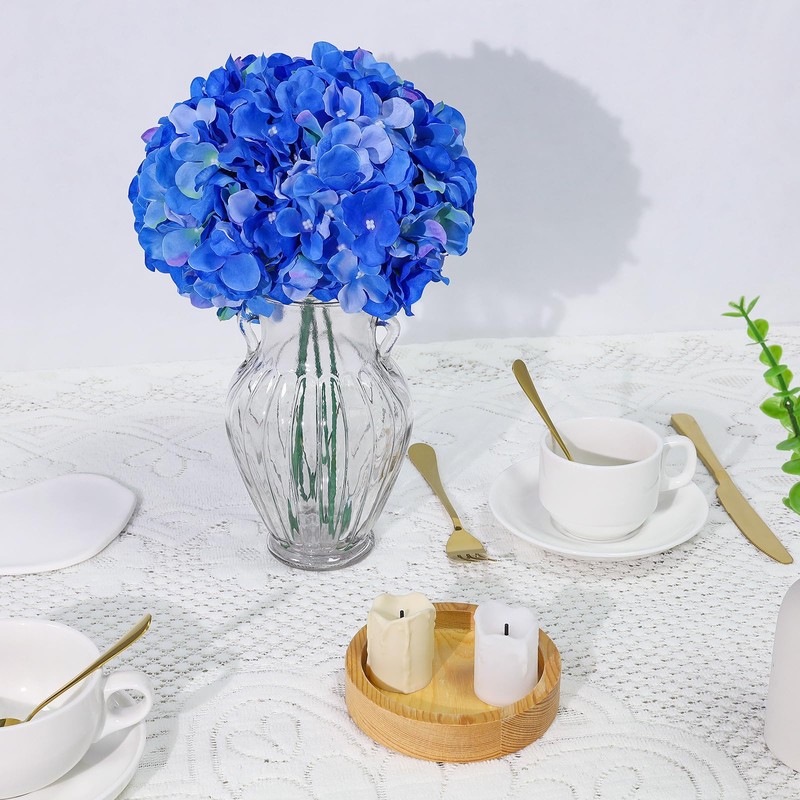 SITUMEIZI Fake Hydrangea Flowers 6PCS Silk Blue Hydrangea Artificial Flowers Faux Hydrangea Flowers for Wedding Room Decoration DIY
