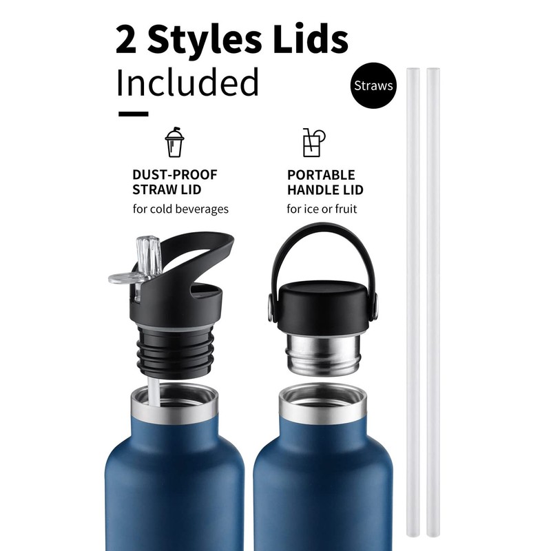 - Stainless Steel: This bottle is made of 18/8 stainless steel, food grade. 26oz, 750ml, 2 lids.