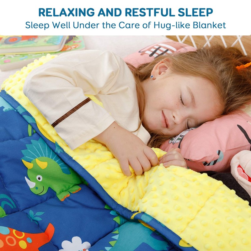 This weighted blanket feels like the gentle hug of mom's with its proper weight in order to promote deep and restful sleep. Made to comfort your kids all day long, this weighted blanket can be used not only at sleep but also for a reading session, TV time, traveling, and more.